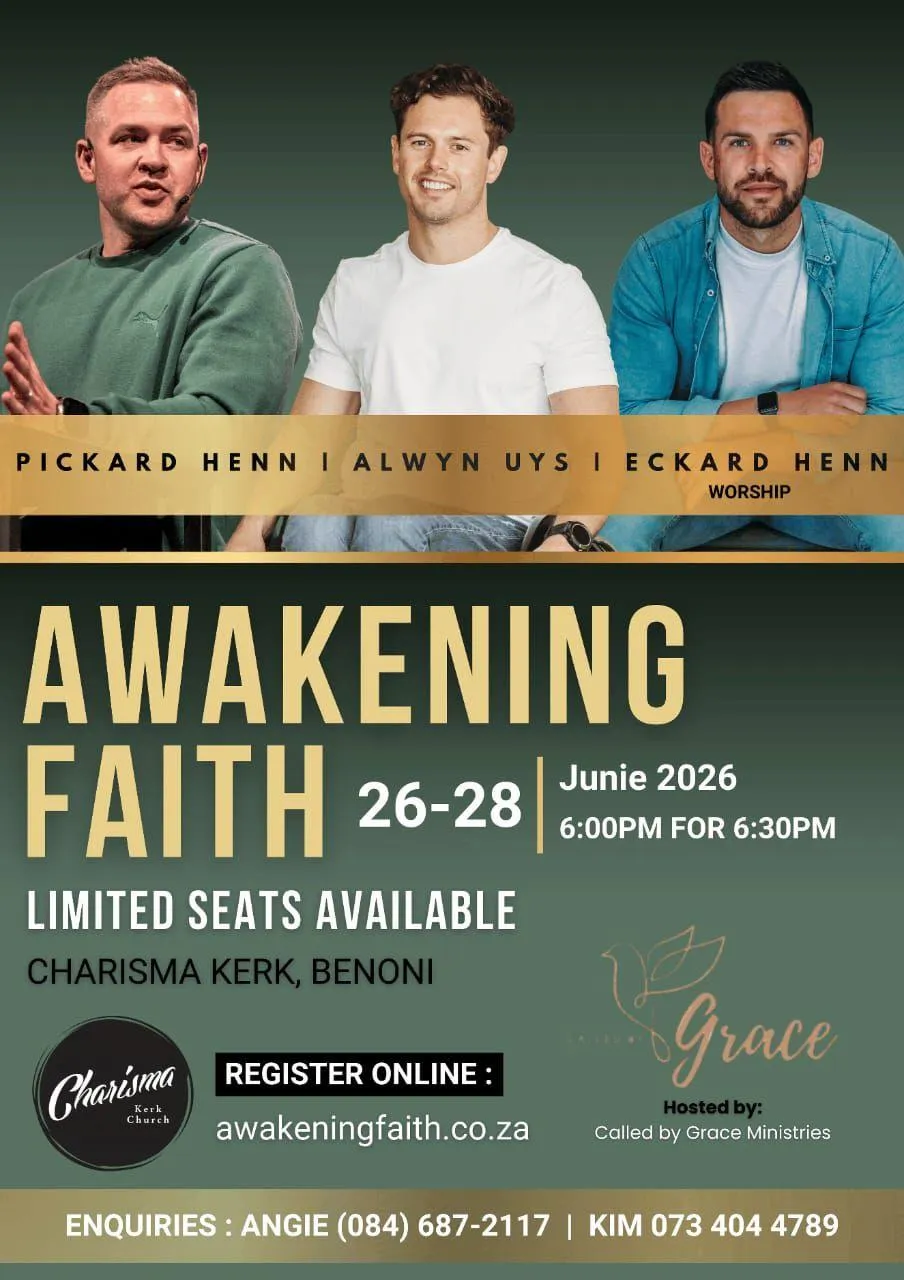 The event will take place at Charisma Kerk in Benoni, South Africa.